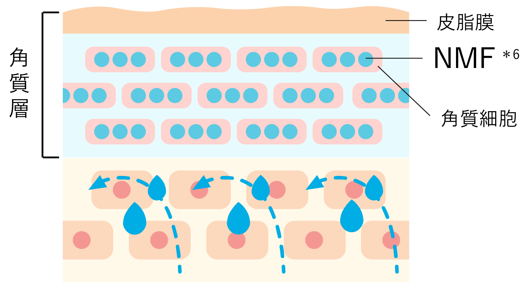 NMF*8(天然保湿因子)が少なく、肌に比べて
