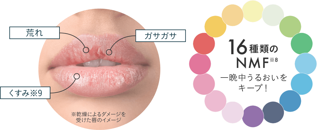 ※6 ナイトニードルリップNMF構成成分(保湿成分):プロリン、アスパラギン酸、